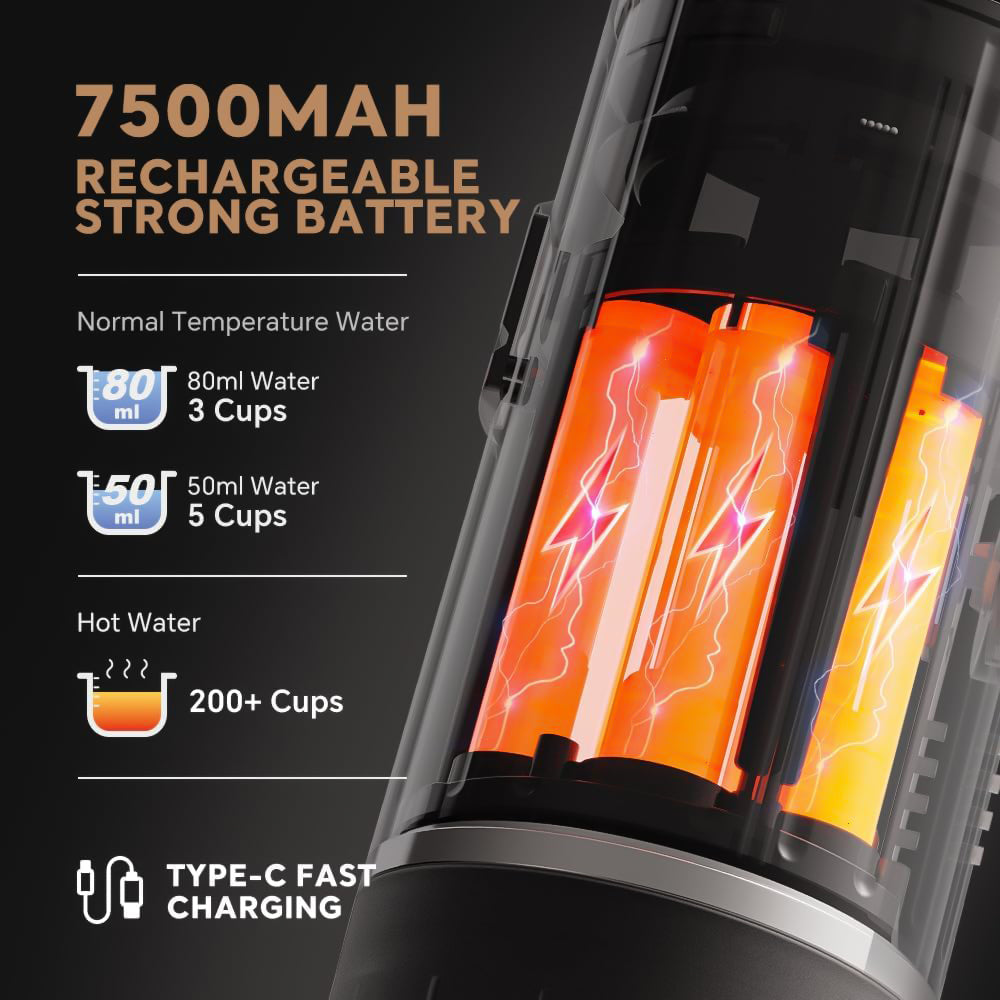Enjoy hot coffee on the go without the need for cables. This portable coffee machine works fully wireless or while plugged in, giving you the freedom to brew wherever you are.